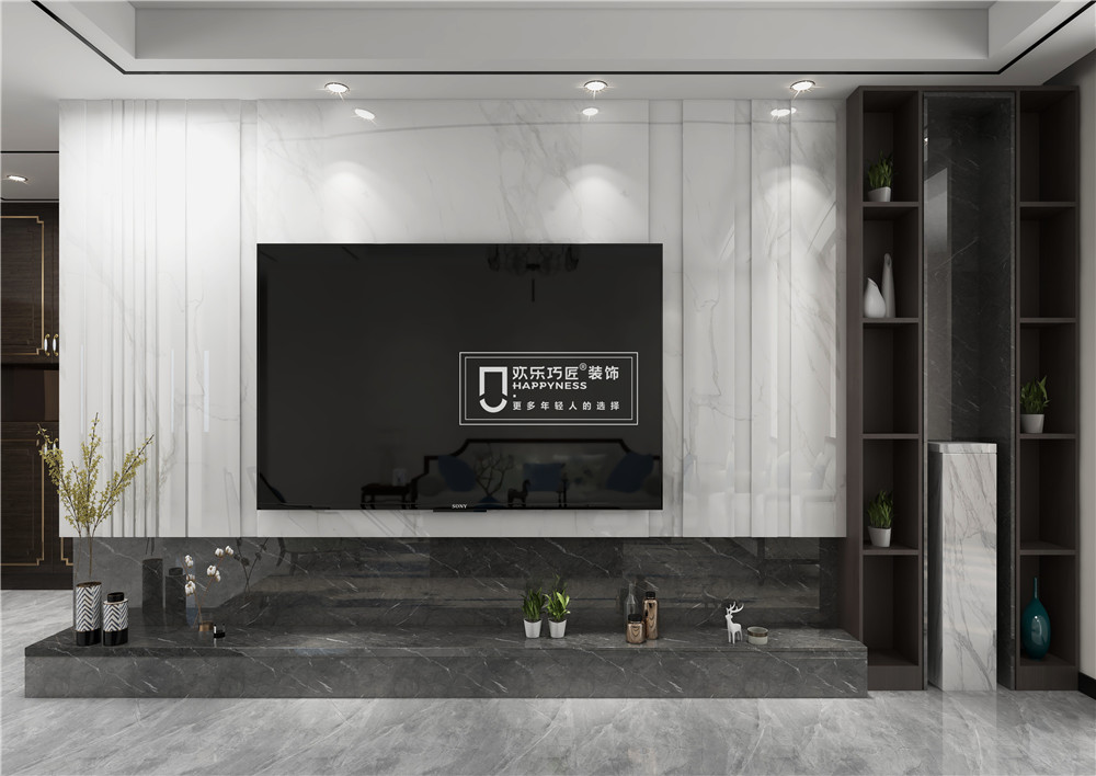 电视背景由洁白的大理石组成,