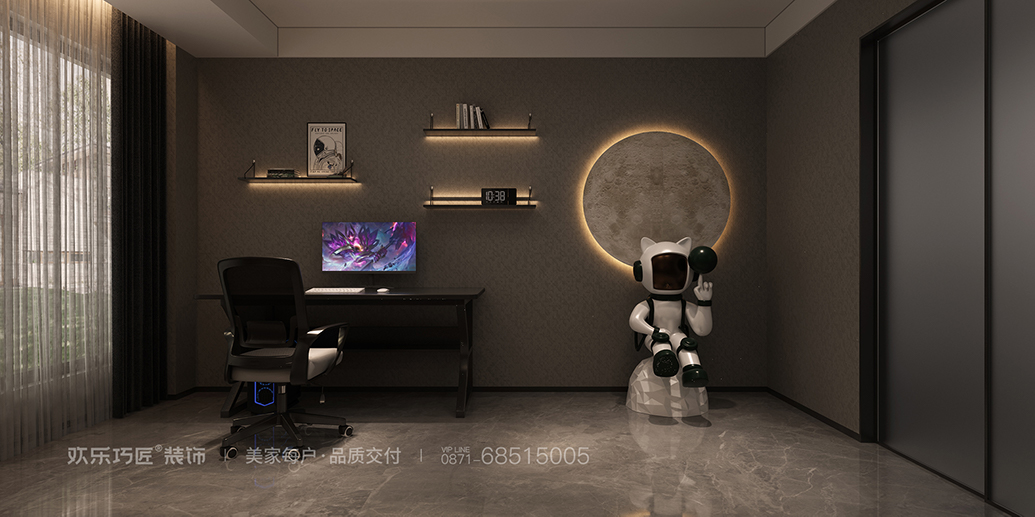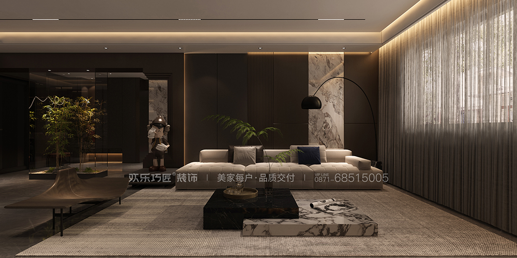 休闲区域极致简化,层层优化修饰细节,营造一个拥有精致氛围的放松空间。