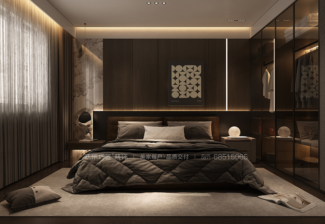 通过空间的连续性和整体性,以视觉韵律感牵引情绪,选用棕色以及清灰和木色来描绘空间,纯粹手法融合艺术与奢华元素,深思空间与情感的链接,打造生活品质与精神归所的大宅。